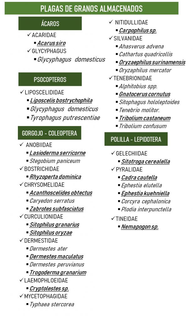 Durante el almacenamiento de granos, harinas o productos derivados de estos se puede presentarse diversos factores de deterioro entre los cuales son propicias para el desarrollo larval de las polillas.